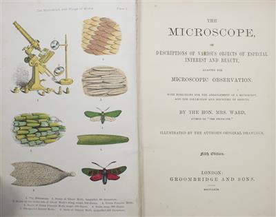 5th edition. Mary Ward (the Hon. Mrs W.) (1827-1869) (born Mary King, Ferbane, Co. Offaly, Ireland and cousin of William, 3rd Earl of Rosse, the renowned Irish astronomer) was an '…exceptionally fine artist and painter, she drew many accurate and delightful illustrations of insects. She became well known as a naturalist, astronomer, microscopist and artist, and was the first woman to write and have published a book on the microscope and its uses in 1858…' (J. O'Connor, 'Insects and Entomology', in 'Nature in Ireland: A Scientific and Cultural History' ed. J.W. Foster (1997)). First published in 1864, under the title Microscope teachings.