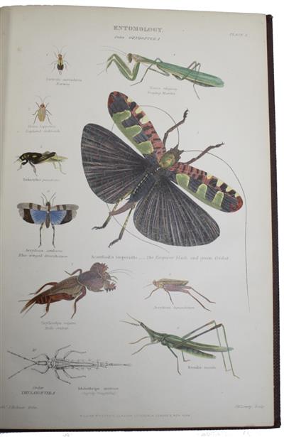 Division VII of The Museum of Natural History (1859-1862), by Sir John Richardson et al., covering the Insects (pp. 175-284). Plates by Nathaniel J. Holmes, engraved by J.W. Lowry. A printed slip tipped in at front states that the work, 'Will be completed in Eight Divisions, substantially bound in cloth, gilt edges, Price 8s. 6d. each. Subscribers will be held bound to take the complete work of eight divisions.' It was originally anticipated to be issued in about twenty parts, each containing 'Five Plates and Thirty-two pages of Letterpress' (from publisher's sampler and order book in our possession). When completed the work was sold, bound variously in 2 vols, 4 vols (Divisions), or 8 vols (Divisions).