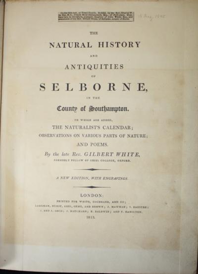 The Natural History and Antiquities of Selborne, in the County of Southampton. To which are added, The Naturalist's Calendar; Observations on Various Parts of Nature; and Poems