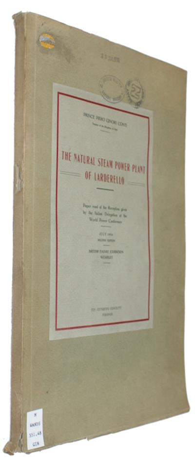 Paper read at the Reception given by the Italian delegation at the World Power Conference. Second edition. Speech given on the Larderello power plant, the oldest geothermal power plant in the world, located in Tuscany, Italy.