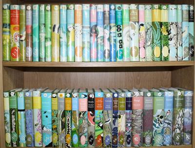 122 vols, all in orig. publisher's green buckram with d/w's, some of the earlier volumes with minor tears and chips, a few (26, 28, 29, 30, 34 & 40) with small pieces missing; 34 also with staining to boards. Vols 53-68, 70 & 71 with orig. publisher's Duraseal protector; remaining d/w's all in removable protective sleeves; Vols 23, 28 & 29 price-clipped. Some d/w spines with varying degrees of fading; a few with volume number to head of spine faded. The set includes first editions of the 'Golden 14' - nos 70-83 with some fading to d/w spines, as usual, mostly light to moderate, but more pronounced to the light title bands of vols 74, 75, 80 & 83; vols 70 (Orkney) and 71 (Warblers) with only very minor fading. Eight of the later volumes still sealed in publisher's cellophane. Overall an attractive set.