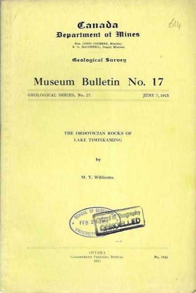 Canada Department of Mines Museum Bulletin No. 17. Geological Series No. 27.
