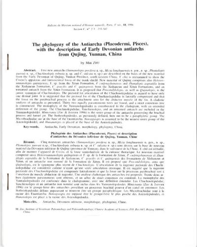 The Phylogeny of the Antiarcha (Placodermi, Pisces), with the description of Early Devonian Antiarchs from Qujing, Yunnan, China