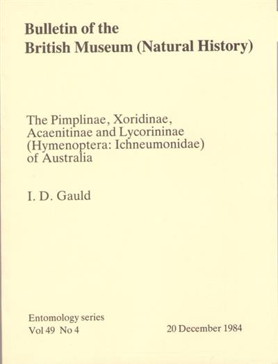 The Pimplinae, Xoridinae, Acaenitinae and Lycorininae (Hymenoptera: Ichneumonidae of Australia)Lettering to spineLettering and Lycorininae (Hymenoptera: Ichneumonidae) of Australiaand Lycorininae (Hymenoptera: Ichneumonidae) of Australia