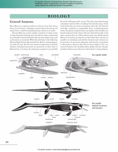 * Describes placodonts, plesiosaurs, ichthyosaurs, mosasaurs, sea snakes, sea turtles, marine crocs, and more