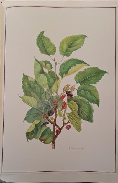 A luxurious production, limited to just 100 copies-this being number 100. This exquisitely illustrated volume explores the history of mulberry trees in Britain, particularly their introduction under King James I, who sought to establish a silk industry. The book offers meticulous botanical descriptions alongside stunning watercolour illustrations of mulberry taxa held in the National Collection of Morus within the gardens of Buckingham Palace. The botanical illustrations, masterfully rendered by Alysia Hunt, were commissioned by Mark Lane, the Royal Gardens Manager, and published in 2012 by the Royal Warrant Holders’ Association to commemorate Queen Elizabeth II’s Diamond Jubilee, as the holder of the National Collection of Morus. Each illustration, is mounted on card, is reproduced at 93% of its original size, capturing the intricate beauty of this royal botanical heritage.
