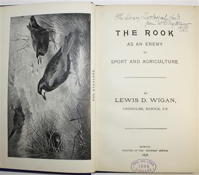 Bound in cloth, gt, orig. printed wrapper retained, but loose. A good ex-lib. copy. Title page inscribed by William Bernhardt Tegetmeier (1816 –1912) was an English naturalist, a popular writer and journalist of domestic science. He was a correspondent and friend of Charles Darwin, Tegetmeier's studies on pigeon breeding and the honeybees were influential on Darwin’s theories.