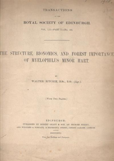 The Structure, Bionomics, and Forest Importance of Myelophilus minor Hart