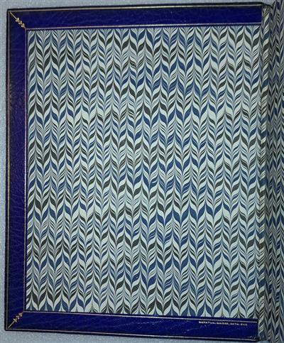 4to, orig. blue full morocco by Bayntun Riviere, Bath, gilt-ruled border to both boards, raised bands to spine, gilt title and swan motifs to compartments, beaded gilt rule to edges of boards, broad turn-ins with gilt rules and tooling to corners, marbled and patterned endpapers, all edges gilt. Spine gently faded. Fine copy.