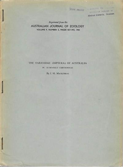 Reprinted from the Australian Journal of Zoology Vol. 9, No. 5, pp.827-905.