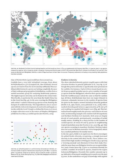This book represents over 30 years of collecting and studying the bivalve family of heart cockles. This meticulous work documents each of the nearly 300 species known worldwide. For all species, the known geographic distribution is plotted on a map, based on over 23,500 documented and verified cardiid records originating from various global institutions, the author's personal collection and other collections. All species are elaborately illustrated on 238 full colour plates, supplemented with 615 photos showing shell details. In total, this book contains about 6,000 images of cockles. The taxonomic treatment encompasses the main type data, comprehensive summaries of the key characters and extensive literature references. Additional remarks address shell morphology, comparisons with other species, ancestral species, ecological preferences and phylogenetic analyses. The introduction provides a broader context for the family, describing the fossil history, shell and animal characteristics, diversity patterns and ongoing phylogenetic research.