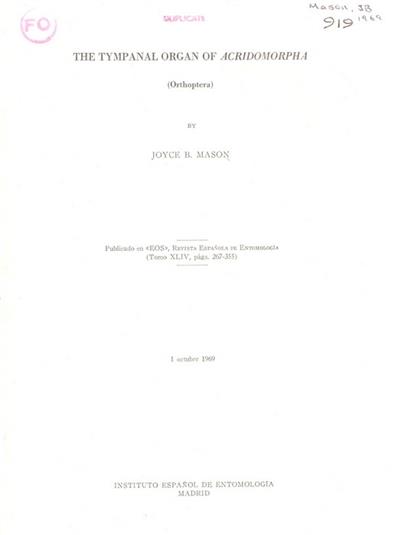 The Tympanal Organ of Acridomorpha (Orthoptera)