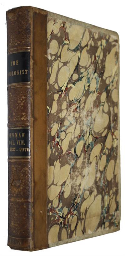 Pp. 2637-2976, Appendix lxv-cxxiv. Eighth volume in this long running periodical. Includes contributions from many leading naturalists of the period, including C.R. Bree, W.T. Bree, John Curtis, Henry Doubleday, J.H. Gurney, Edward Newman, Alfred Newton, F.O. Morris, Edward Newman, Alfred Newton, Frederick Smith, H.T. Stainton, J.F. Stephens, Francis Walker, T. Vernon Wollaston, John Wolley, etc., etc. Includes 'A list of the birds of Roxburghshire' by Archibald Jerdon (pp. 2872-2878).