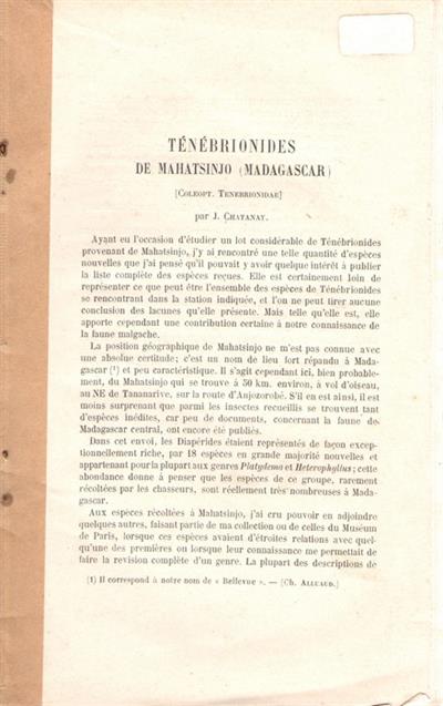 Ténébrionidea de Mahatsinjo (Madagascar)