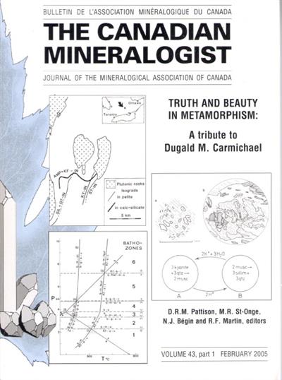 The Canadian Mineralogist: Journal of the Mineralogical Association of Canada Vol 43(1). This thematic issue is devoted to one of the world’s most original thinkers in metamorphic petrology, Dugald M. Carmichael, who retired from Queen’s University, Kingston, Ontario.