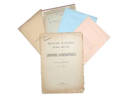 2 & 3. W.P. Pycraft (1894-1896) The Wing of Archaeopteryx, from Natural Science V: 350-449 and VIII: 261-266., text figs (both inscribed to Prof. H.G. Seeley with the author's compliments).