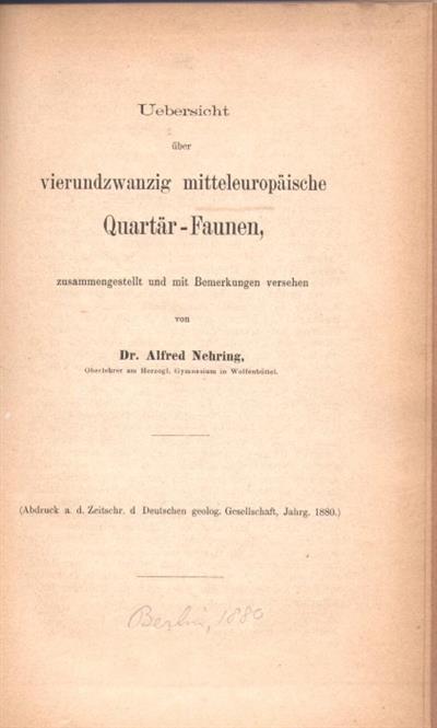 Text German. Offprint from Zeitschr. d Deutschen geolog. Gesellschaft, Jahrg. 1880. Lists species found at 24 central European Quaternary sites, with brief notes