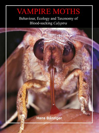 The book is introduced with the author’s scientific odyssey in the quest for the secretive vampire moths, initiated more than half a century ago in Southeast Asia and nearby regions. The main part of the book presents a synthesis of three decades of research based mainly on his nocturnal field investigations in or near forest habitats. What would appear as perverted feeding habits in insects generally thought as gentle flower visitors are exposed as sophisticated adaptations developed in a select group of less than ten of the 180,000 known species of Lepidoptera. Calyptra’s unique skin-piercing blood-sucking methods are detailed in photographs and diagrams. The moths’ victims range from elephants and rhinoceroses, to tapirs, horses, cattle, deer and pig, and occasionally humans. Other aspects treated include distribution, behaviour, ecology, phenology, and physiology. An identification key facilitates recognition of all Calyptra species (not all are blood suckers), enhanced by illustrations and descriptions of moth adults, their caterpillars and host plants. The moths’ veterinary-medical implications are discussed in the light of their being among the largest of all blood-sucking insects, combined with their unorthodox mode to bleed their quarry. The book is rounded off reviewing the most probable scenarios of the moths’ evolutionary pathway into blood suckers, and added with a comprehensive list of the subject’s literature.
