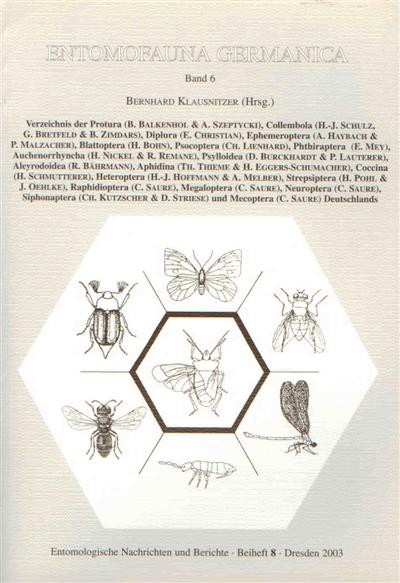 Verzeichniss der Protura, Collembola, Diplura, Ephemeroptera, Blattoptera, Psocoptera, Phthiraptera, Auchenorrhyncha, Psylloidea, Aleyrodoidea, Aphidina, Coccina, Heteroptera, Strepsiptera, Raphidioptera, Megaloptera, Neuroptera, Siphonaptera und Mecoptera Deutschlands