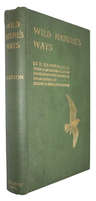 8vo, orig. green cloth, gilt title to spine and front board, gilt vignette, top edge gilt. Some light foxing/spotting to endpapers, edges, and the verso of the frontis. Very good. Signed by both Richard and Cherry Kearton and with the bookplate of Rowland Ward (1848-1912) (probably presented to him by the Keartons). Ward was a British taxidermist, as well as publishing several natural history books. He was also a friend of the Keartons, and had prepared a cow hide for Richard Kearton, in which he could conceal himself with a camera when photographing birds (John Bevis (2016) The Keartons: Inventing Nature Photography).