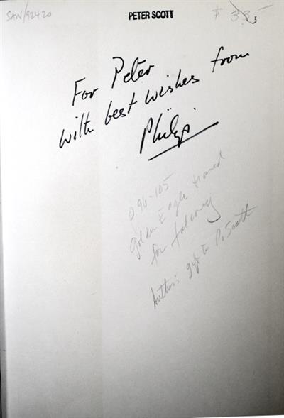 8vo, orig. boards. Vg in d/w. Signed and inscribed by the author to British naturalist and illustrator, Peter Scott, 'For Peter with best wishes from Philip'. Small ink stamp to endpaper, 'Peter Scott'.