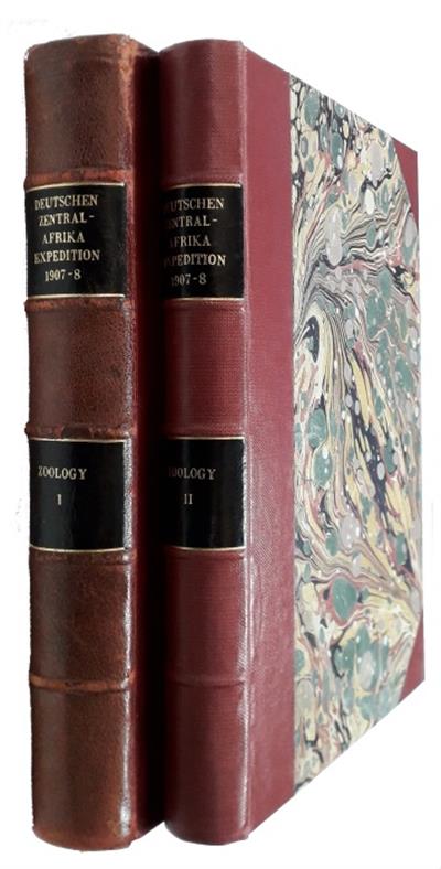 Text German. Scarce. Adolf Friedrich Albrecht Heinrich, Herzog zu Mecklenburg (1873-1969) was a German explorer in Africa and colonial polition. He led and partly funded the German Central Africa Expedition, 1907-1808 to the African Great Rift Valley. The expedition crossed Africa from east to west, beginning in Bukoba on the western shore of Lake Victoria continuing to Lake Kivu and the Congo region, and also the Uele River. The results of the Expedition were published in 8 volumes (1910-1927); the zoological reports comprising vols 3-5 (of which these are the first two). The zoological specimens from the Expedition are now housed in the Zoological Museum in Berlin.