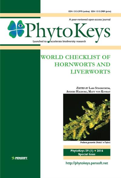 Phytokeys 59 - Special Issue. 41 scientists from 18 countries here present the first-ever worldwide checklist for liverworts (Marchantiophyta) and hornworts (Anthocerotophyta) including 7,486 species. This group of generally small-sized plants constitute a major part of the biodiversity in many regions of the world and are of critical biological and ecological significance. This will contribute to The Plant List, which has been developed and disseminated as a direct response to the Global Strategy for Plant Conservation and designed as a framework for action to halt the loss of plant diversity. Checklists are powerful and important tools that can integrate overwhelmingly scattered information and provide baseline fundamental information that can be applied broadly from taxonomy to conservation.
