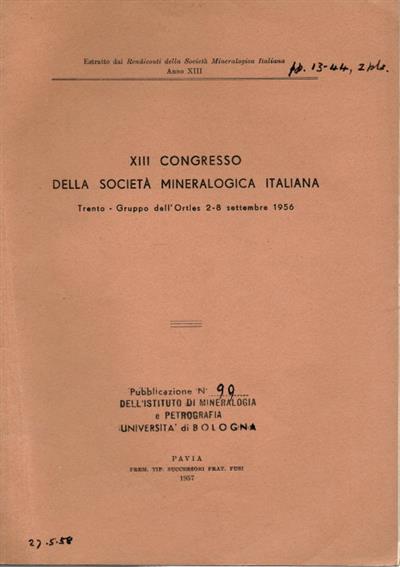 Text Italian. Estratto dai Rendiconti della Societa Mineralogica Italiana Anno XIII pp.13-44