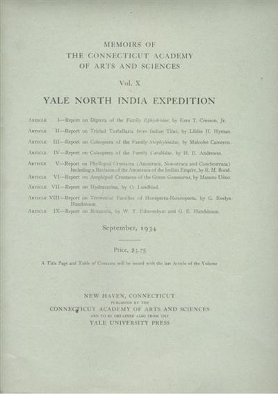 Memoirs Connecticut Academy of Arts and Sciences. Vol. 10 Article 4. Concerns the Yale North India Epedition to Ladak.