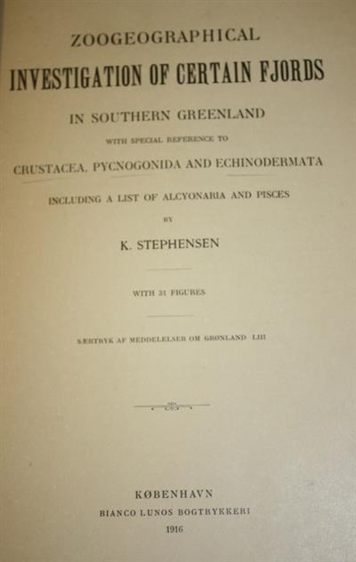 Zoogeographical investigations of certain fjords in southern Greenland: with special reference to Crustacea, Pycnogonida and Echinodermata. Including a list of Alcyonaria and Pisces