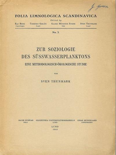 Zur Soziologie des Süsswasserplanktons: Eine methodologisch-ökologische Studie